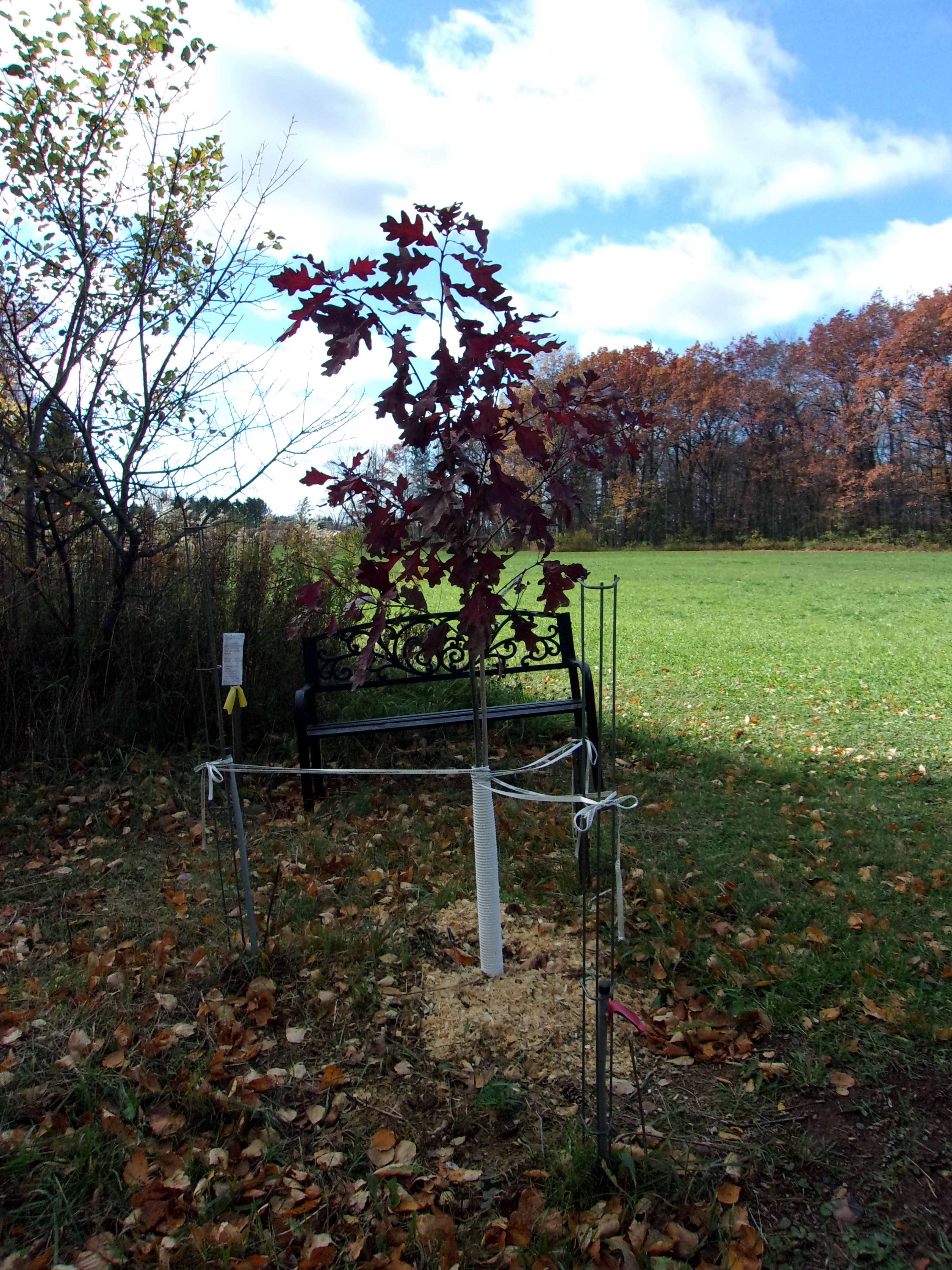 Located on the edge of the hayfield, this bench features a white oak that was planted on the property by the Taylor County Literacy Council in memory of Loretta Kuse, who passed away in January, 2020.